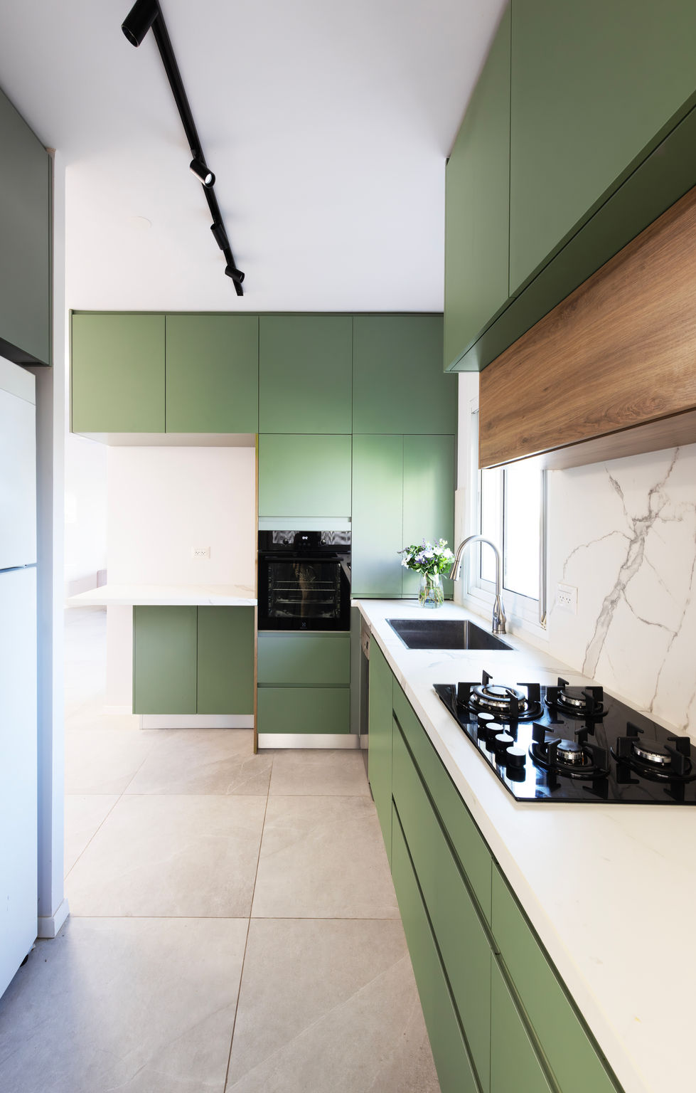 This full renovation project was a true collaboration with a lovely South African family who entrusted me with transforming their apartment. From creating the building plans to designing a bold olive green kitchen, we reimagined the space into a modern, open-plan home. Every detail was carefully considered to combine functionality, style, and a sense of warmth — turning their apartment into a space they now love coming home to.